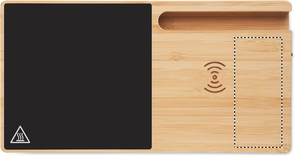 Kabellose Ladestation mit Tassenwärmer und Smartphone-Halter. Bambus. Verbinden Sie das Gerät mit dem Computer und laden Sie Ihr Smartphone durch einfaches Auflegen auf. Ausgang: DC 9V/1.67A (15W). Kompatibel mit allen QI-fähigen Geräten wie den neuesten Android Smartphones, iPhone® 8 und X und höher.