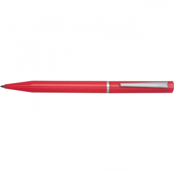 Schreibset bestehend aus einem blauschreibenden Drehkugelschreiber, einem tintenlosen Drehkugelschreiber und einer Kartonbox. Beide Stifte sind aus recyceltem ABS gefertigt. Ihr Logo wird auf beide Schreibgeräte gedruckt.
