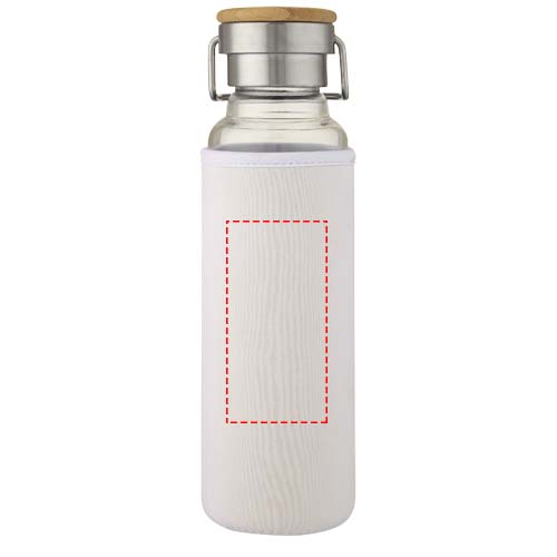 Einwandige Flasche aus Borosilikatglas mit Schutzhülle aus Neopren. Ausgestattet mit einem Schraubdeckel mit Bambusoberteil sowie einem Griff zum einfachen Tragen. Die Flasche besteht aus 100 % robustem Borosilikatglas ohne schädliche Chemikalien und hält Ihre Getränke frisch. BPA-frei, geprüft und zugelassen nach dem deutschen Lebensmittelrecht (LFGB). Auf Phthalate geprüft und zugelassen gemäß den REACH-Vorschriften. Der verwendete Bambus stammt aus nachhaltigen, umweltfreundlichen und sozialverträglichen Quellen. Das Fassungsvermögen beträgt 660 ml. Nach dem Abnehmen von Neopren-Hülle und Deckel ist die Flasche spülmaschinenfest. Verpackt in einer Geschenkbox aus Recyclingkarton.