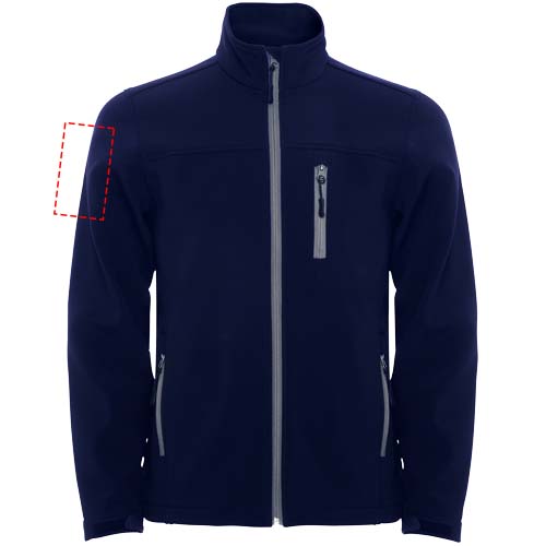 2-layer softshell. Inverted sealed effect zip with matching chin protector and zipper puller. Cut detail on chest. Three zip pockets with matching puller. Velcro fasteners in cuffs. Adjustable bottom hem with elastic drawcord and stoppers. 1000 mm water resistant. Wind-proof fabric. The model is 185 cm and is wearing size M.