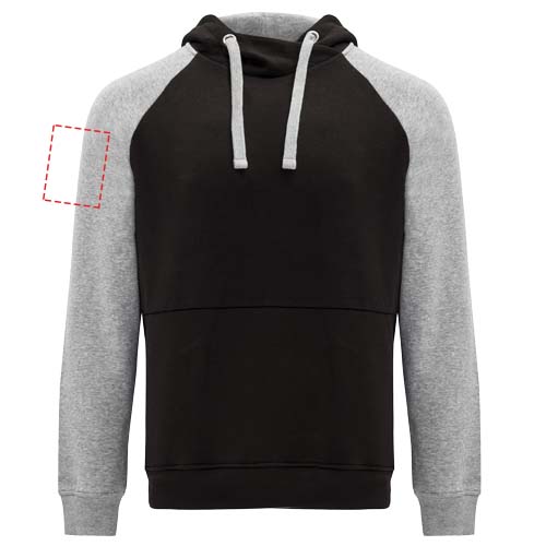 Two-colour unisex hoodie. Hood with crossed neck and metal eyelets. Contrasting inner hood, drawcord and raglan sleeves. Kangaroo pocket. Cuffs and hem in 1x1 elastane rib knit. Removable label.