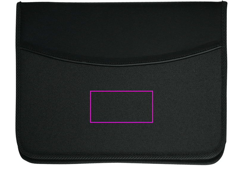 Briefcase made of durable 600D polyester; with various compartments, 270° zipper, and a neutral writing pad (40 pages.) We print your logo on the Soft PU border.