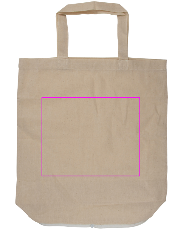 Natural colored, foldable and environmentally-friendly cotton bag (120g/m²) with carrying handle. We print your logo on one side.