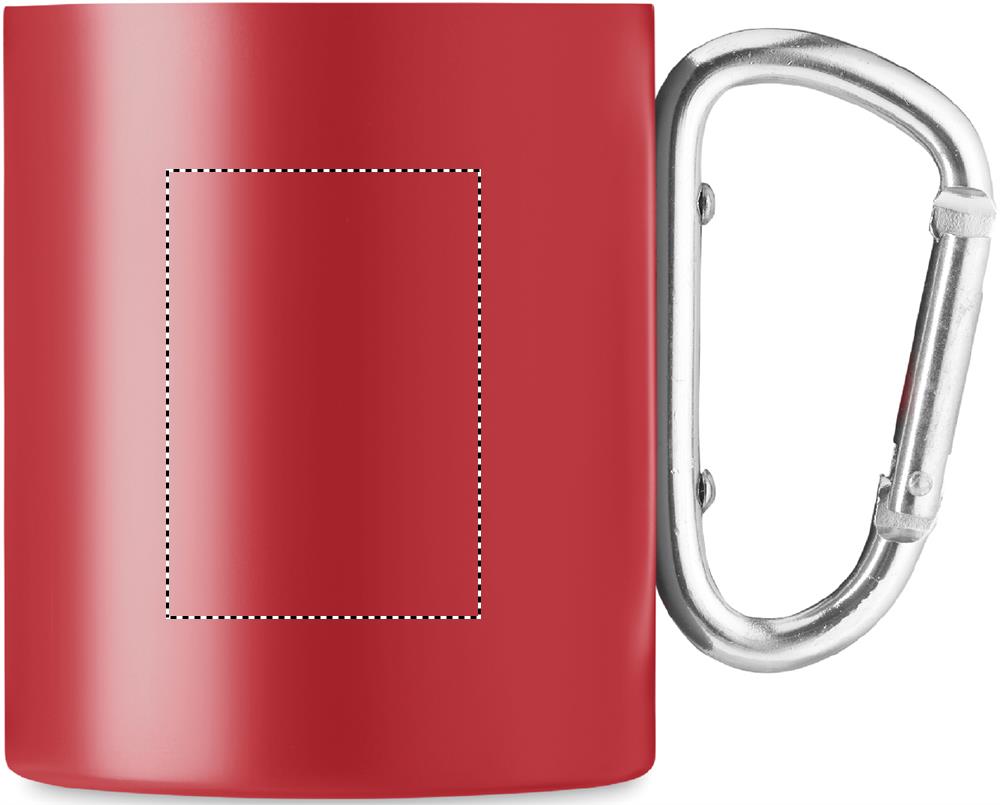 Double wall stainless steel mug, with carabiner handle. Capacity: 300 ml.