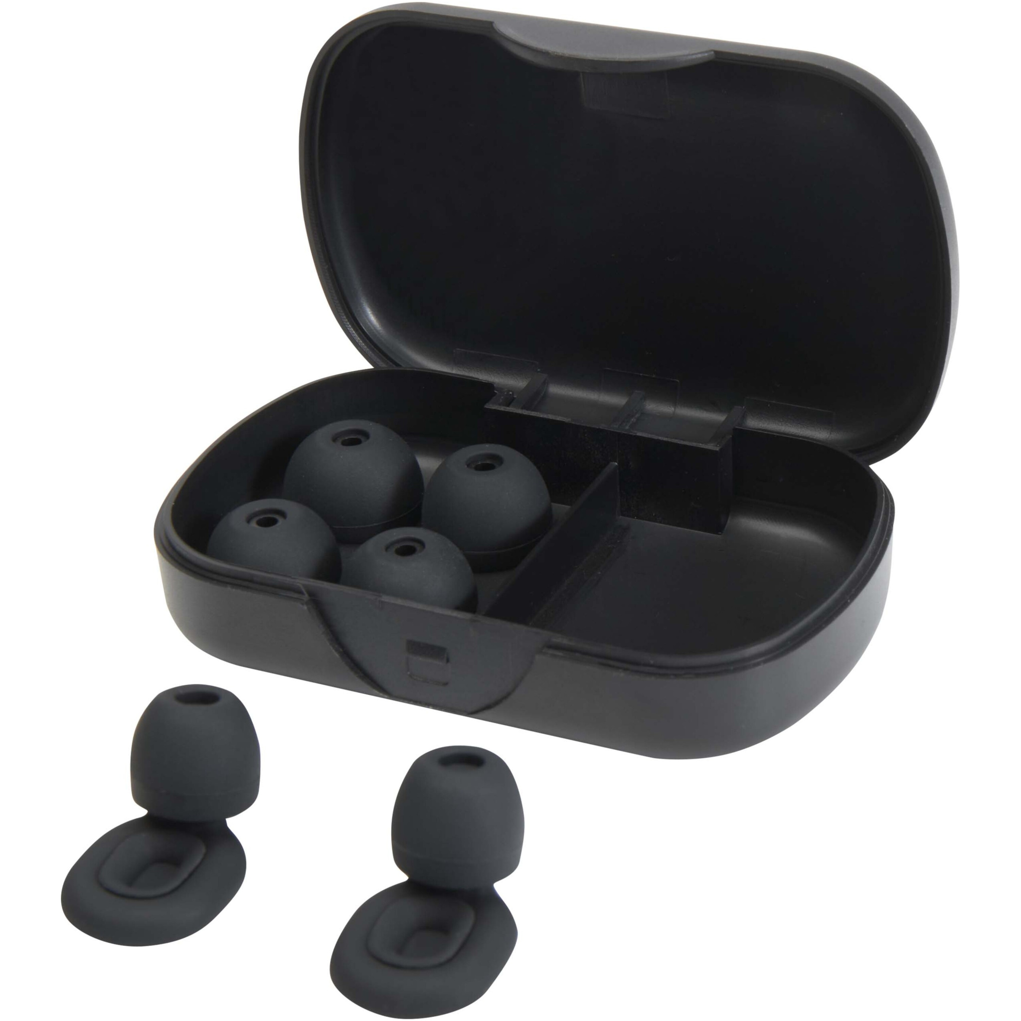 Enjoy peace and quiet wherever you are with these high-quality silicone earplugs—perfect for sleeping, studying, or traveling. Designed to effectively reduce noise, they help you focus or rest without distraction. Delivered in a compact case made from recycled plastic, making them easy to carry and hygienically stored. With three sizes included, you're guaranteed a comfortable, secure fit no matter your ear shape.