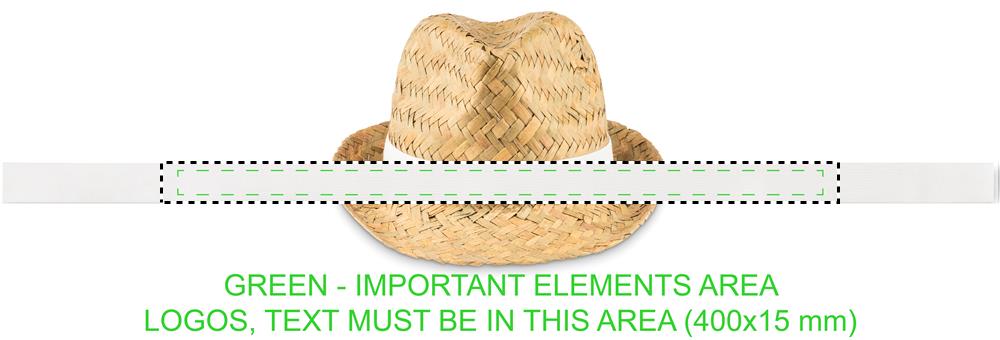 Natural straw hat with polyester band. For unprinted orders band will be supplied unattached to the item.