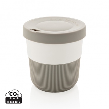 A sustainable alternative to traditional cups! Bringing style and practicality to your morning commute, this PLA coffee cup is ideal for transporting your favourite hot beverage. Manufactured from plant material (PLA), so not only stylish but also kind for the planet. Comes with a silicone grip and lid for your convenience. Fits conveniently under most coffee machines. 100% melamine free. Capacity 280ml.