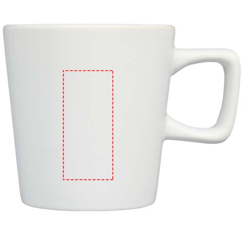 Modern design ceramic mug with matt finish. Volume capacity is 280 ml. Dishwasher safe for all decoration methods. Presented in a recycled cardboard gift box.