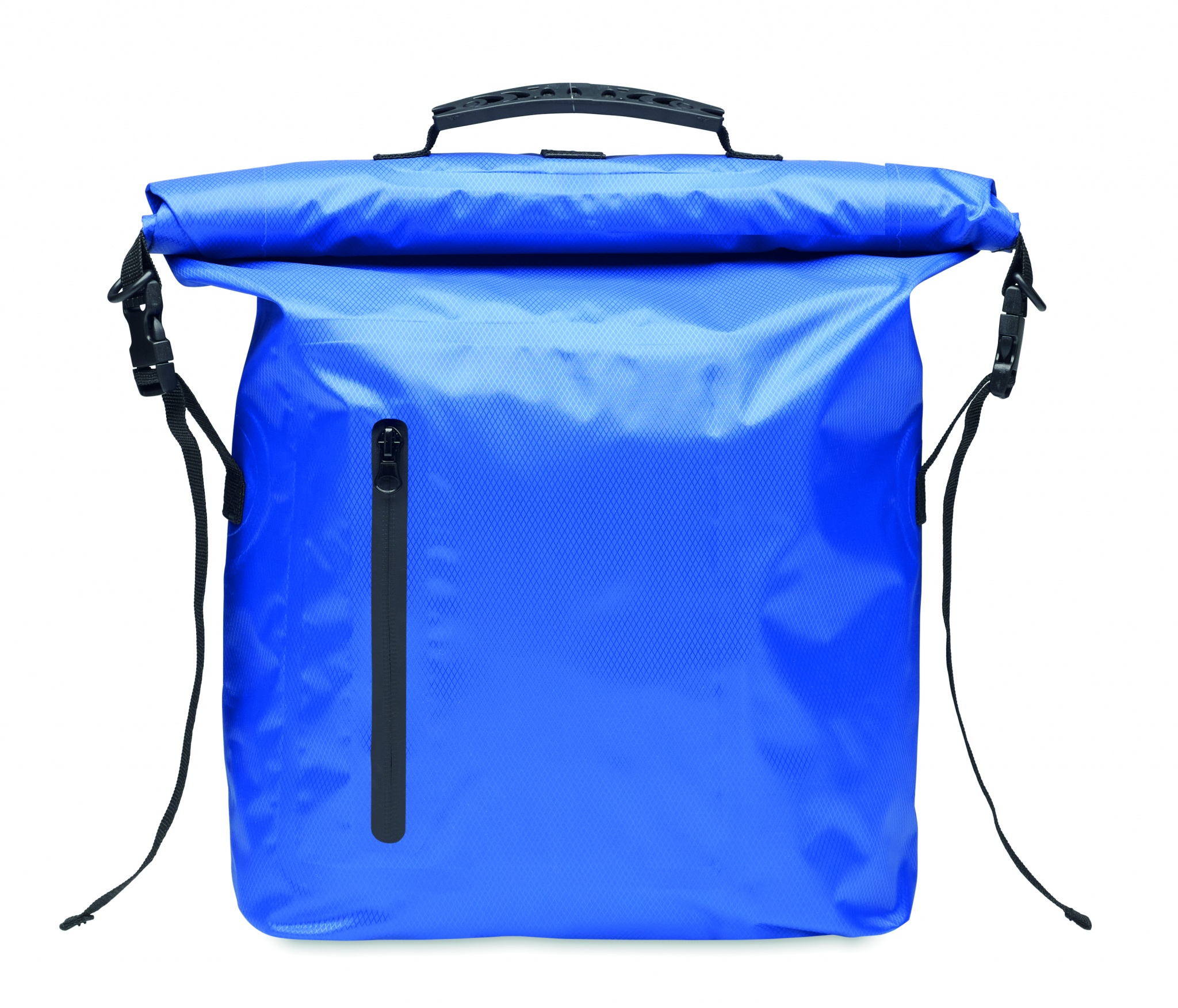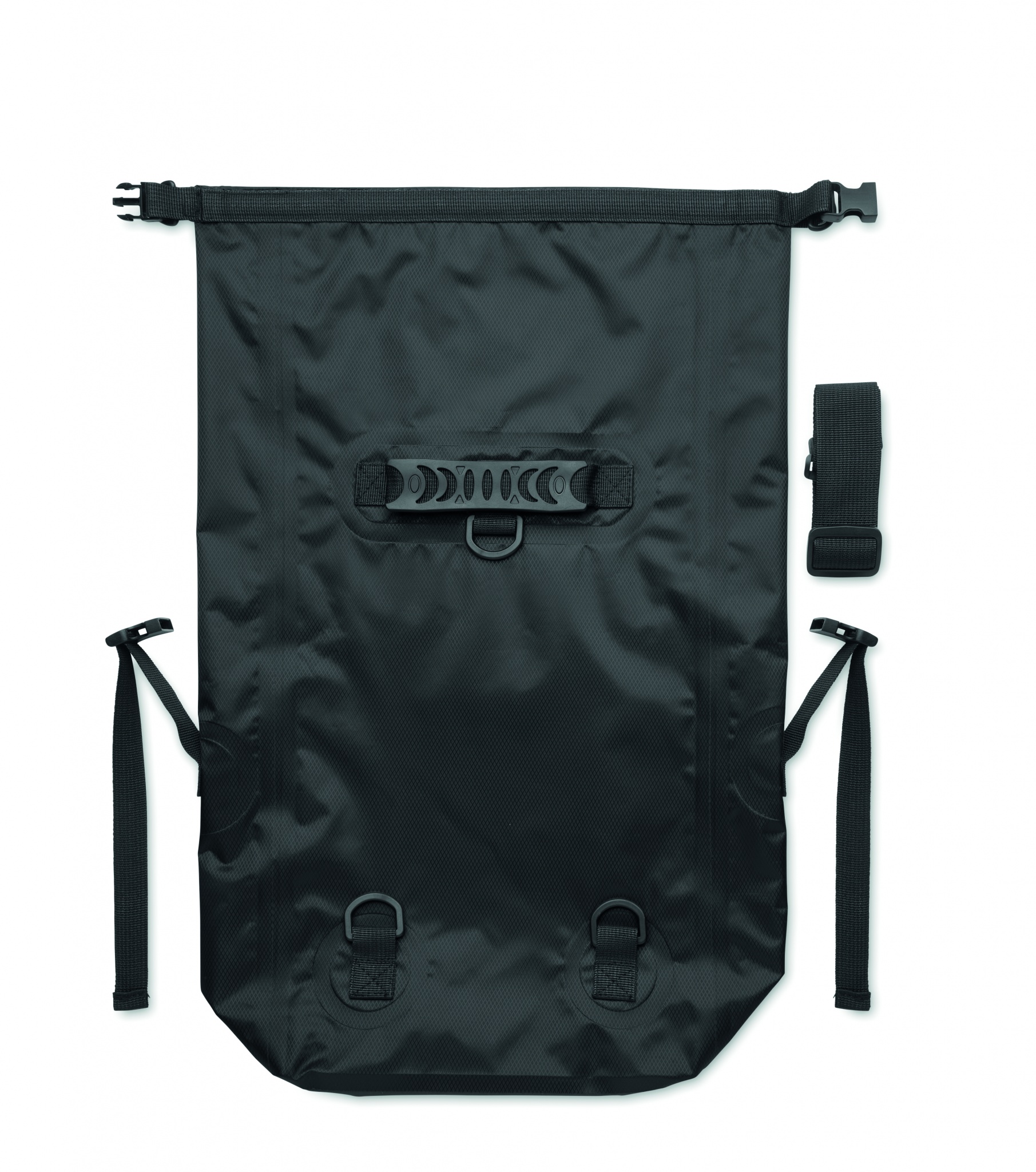 RPET 210D polyester waterproof rolltop backpack. Capacity: 30L.