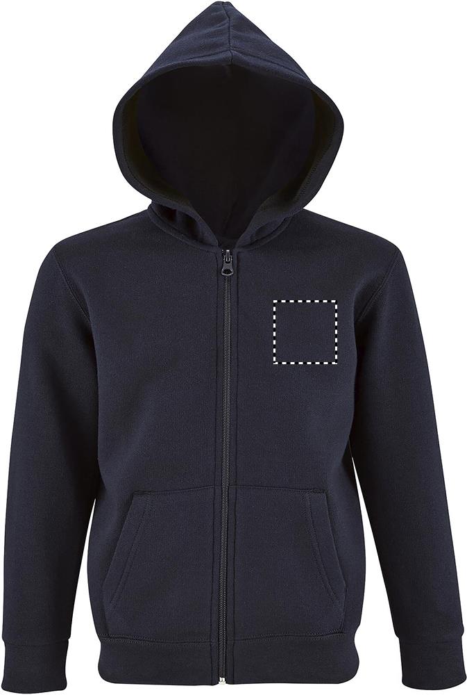 SOL'S STONE KIDS, KIDS' ZIP HOODIE, 50% Ringspun cotton - 50% polyester BRUSHED FLEECE 260, Set-in sleeves, 2 kangaroo pockets, Hood, Ribbed cuffs and bottom, Tubular. About sizes matching, please refer to the size chart in the product documentation section.