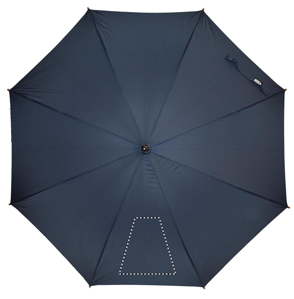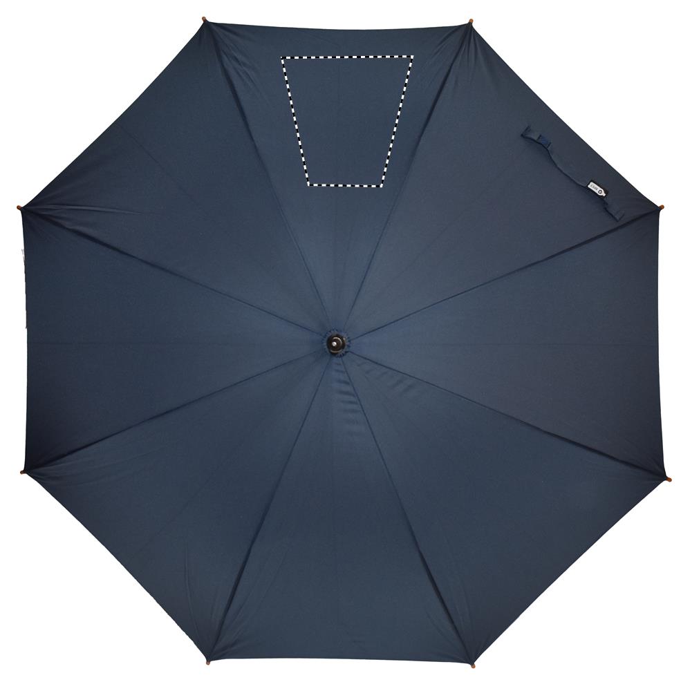 23-tolline automaatselt avatav vihmavari 190T RPET-pongee puidust varre, otste ja ülaosaga. Musta värvi metallist ribid. Kumer naturaalse viimistlusega puidust käepide. Käsitsi sulgemine.