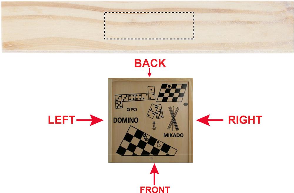 Puidust kast, mis sisaldab doomino-, male-, kabe- ja puukeppide mänge.