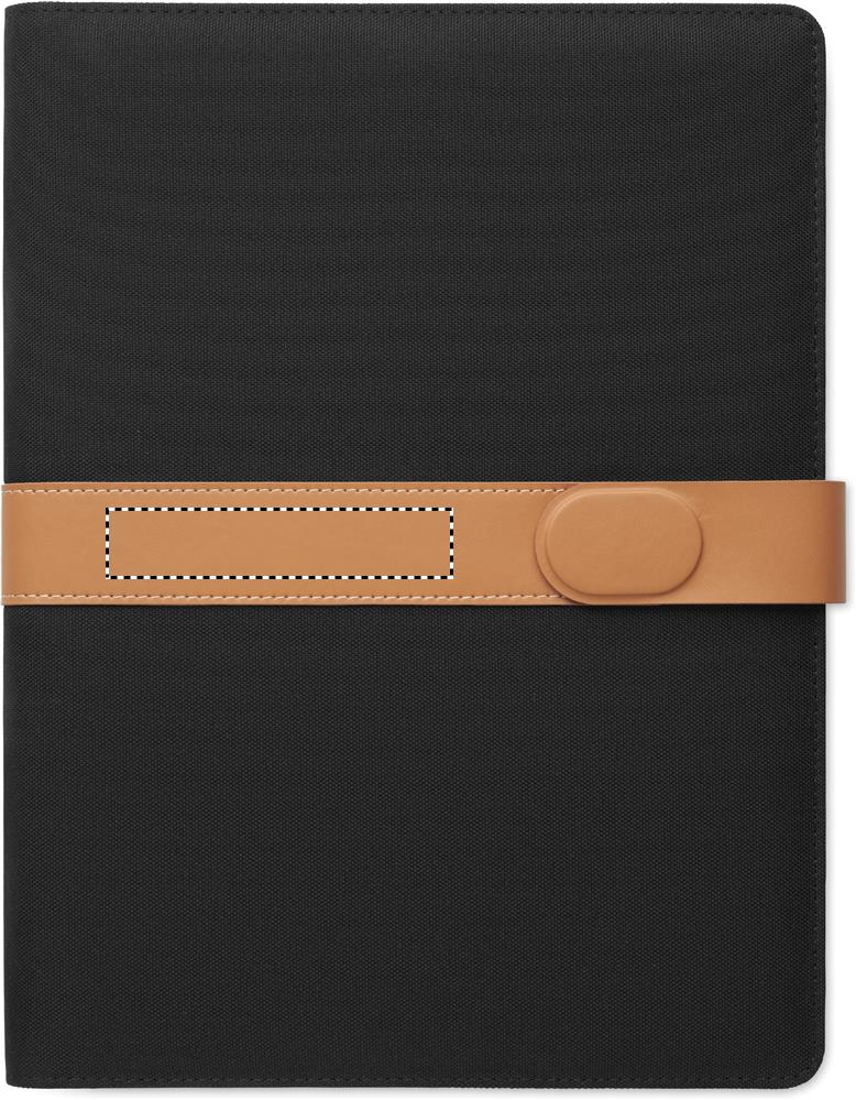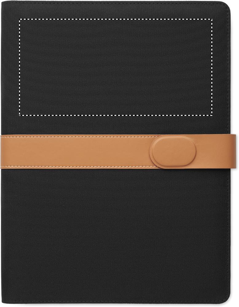 A4 portfell kunstnahast detailidega RPET. Vahetatav A4 märkmik.30 taaskasutatud paberist vooderdatud lehte. Pliiatsihoidja. 4 kaardihoidjat, 3 väikest taskut ja üks suur sahtel. Magnetrihmaga sulgur.
