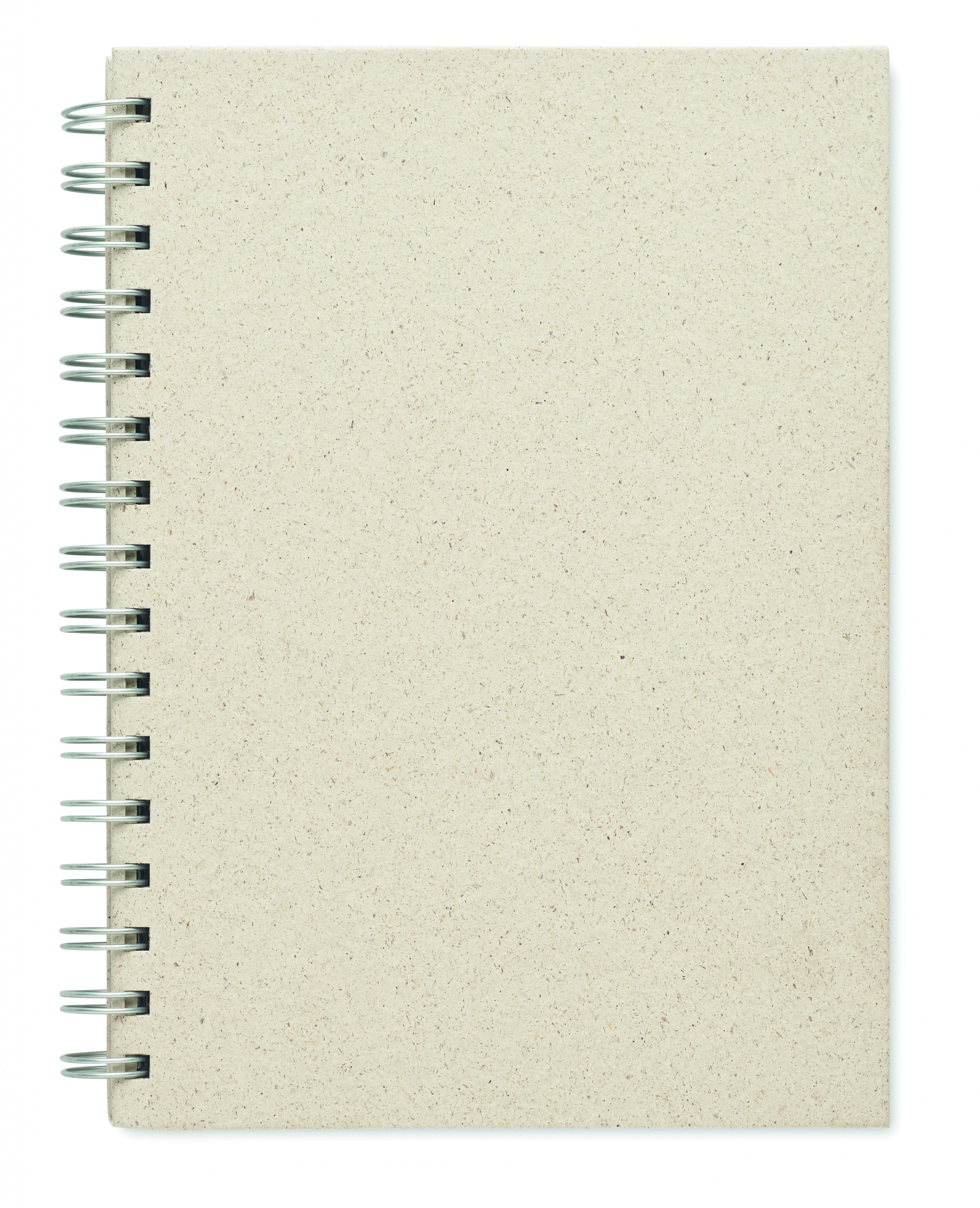 A5 murupaberist märkmik. Murupaberist kõva kate. Kahejuhtmeline. 160 joonega murupaberilehte (80 lehte). 95 gsm paber. 40% murukiude sisaldav murupaber.