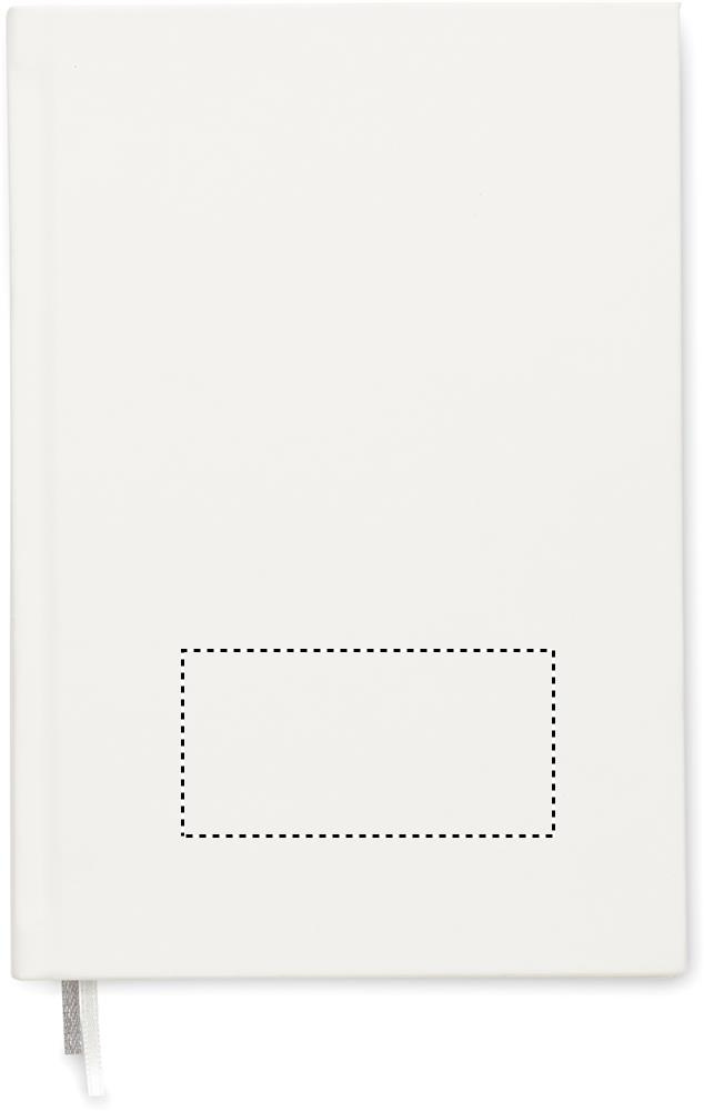 A5 formaadis märkmik, 60% ulatuses taaskasutatud polüestrist ja 40% polüuretaanist kaaned. Pakendatud kinkekarpi. 256 lehekülge 70 g/m² taaskasutatud paberist (128 lehte). Kaks järjehoidjat.