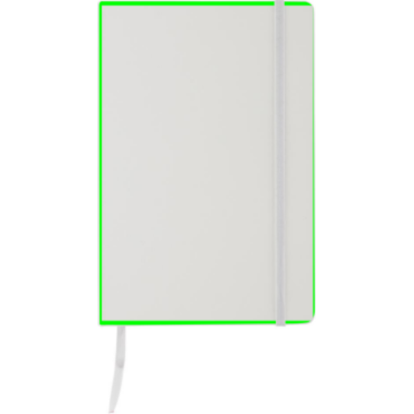 A5 suurus kummipaelaga ja kunstpaberiga kaane esiküljel tagaküljel, ümarad nurgad, sisemised lehed musta värvi joontega kreemjas paber, 80g/m2 160 lk, sobiv lehejagaja.