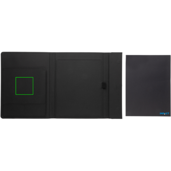 Selle kauni magnetsulguriga A4 Aware™ RPET portfelli abil saate kõik oma tööks vajalikud asjad korras hoida. Seest leiate 1 suure varrukatasku, 2 lisataskut ja pliiatsi aasa. Kaasa arvatud FSC taaskasutatud paberist märkmik. Märkmikus on 20 lehte kreemika voodriga 70gm/s taaskasutatud paberit. Seest ja väljast 100% taaskasutatud polüester. AWARE™ märgistusega, mis kinnitab taaskasutatud materjalide ehtsat kasutamist. Igas portfellis on taaskasutatud 3,2 0,5L PET-pudelit. 2% iga müüdud Impacti toote tulust annetatakse veebisaidile Water.org. PVC vaba.