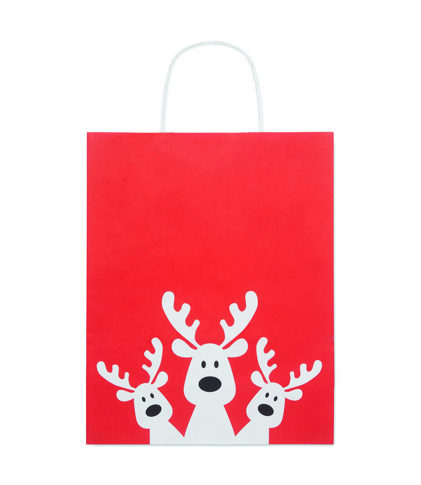 Jõuludeks mõeldud keskmise suurusega kinkepaberist kott (50% taaskasutatud paberist). 90 g/m². Valmistatud EL-is.