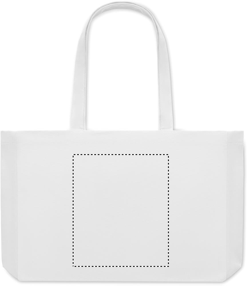 Taaskasutatud lõuendist ostukott või rannakott, 50% puuvill ja 50% taaskasutatud puuvill, pikkade sangade ja servadega. 280 gr/m².