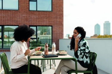 Taaskasutatud roostevabast terasest lõunasöögikarp taaskasutatud PP kaanega ja 4 küljekinnitusega. Mahutavus: 850 ml.