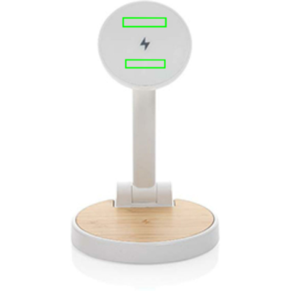 15 W 2-ühes kiirlaadija magnetlaadimisega, mis on valmistatud RCS-i (Recycled Claim Standard) sertifitseeritud taaskasutatud ABS-iga. Taaskasutatud kogusisaldus: 30% eseme kogukaalust. RCS-sertifikaat tagab taaskasutatud materjalide täielikult sertifitseeritud tarneahela. Bambusest juhtmevaba laadimisala, mis on valmistatud FSC 100% bambusest. Magnetilise 15 W laadija ja ühe 5 W laadijaga muude juhtmevabalt laetavate esemete (nt kõrvaklapid) jaoks. Ühe USB A-pordiga esemete laadimiseks kaabli kaudu. Toode ja tarvikud PVC-vaba. Kaasa arvatud 120 cm C-tüüpi laadimiskaabel, mis on valmistatud RCS-sertifikaadiga taaskasutatud TPE-st. Pakitud FSC mix kraft karpi. 9V/3A; W: 9 V/1,1 A; 9V/1,67 A/(15W), kõrvaklapid: 5V/1A (5W), USB-väljund 5V / 2,1A. PVC vaba.