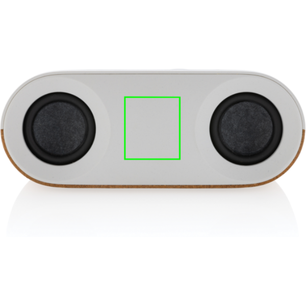 10 W juhtmevaba kõlar, mis on valmistatud FSC® 100% korgist ja RCS (Recycled Claim Standard) sertifitseeritud taaskasutatud ABS-ist. Taaskasutatud kogusisaldus: 25% eseme kogukaalust. RCS-sertifikaat tagab taaskasutatud materjalide täielikult sertifitseeritud tarneahela. Kõlar on varustatud 1200 mAh akuga, mis tagab kuni 10 tundi mänguaega, ja BT5.3-ga, mis tagab sujuva ühenduse ja selge heli. Ühendusulatus kuni 10 meetrit. Kõnedele vastamiseks mikrofoni ja vastuvõtmisfunktsiooniga. Pakitud FSC mix FSC® karpi. Kaasa arvatud RCS-sertifikaadiga taaskasutatud TPE laadimiskaabel. Toode ja tarvikud 100% PVC-vaba.