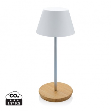Luksuslik laualamp, mis on valmistatud RCS-sertifikaadiga taaskasutatud ABS-plastist, taaskasutatud alumiiniumist ja FSC-sertifikaadiga 100% bambusest. Taaskasutatud kogusisaldus: 40% eseme kogukaalust. RCS-sertifikaat tagab taaskasutatud materjalide täielikult sertifitseeritud tarneahela. Laualamp töötab ühe laadimisega kuni 18 tundi ja seda saab uuesti laadida 2 tunniga. A-klassi 1800 mAh aku ja C-tüüpi sisendiga (5V/1A) Kahe režiimiga (soe valgus ja valge valgus), mida saab reguleerida põhjas oleva puuteanduriga. Taaslaetav USB-C kaudu. Pakitud FSC® segupakendisse. IPX 4 veekindel.