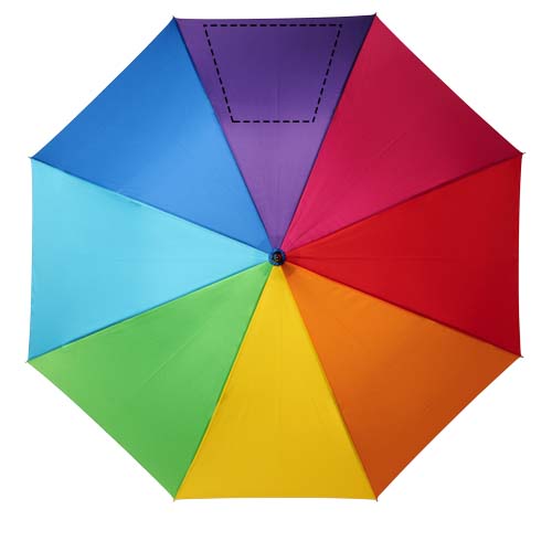 Automaatselt avanev vihmavari vikerkaarevärvilise pongee polüester varikatusega. Tugev metallist vars, kvaliteetne täisklaaskiust raam, mis pakub maksimaalset paindlikkust tuulistes oludes. Pehme puudutusega kõver käepide ning nikeldatud otsad ja ülaosa. Võimalik suur kaunistusala igal paneelil, pakkudes erinevaid loomingulisi logolahendusi.