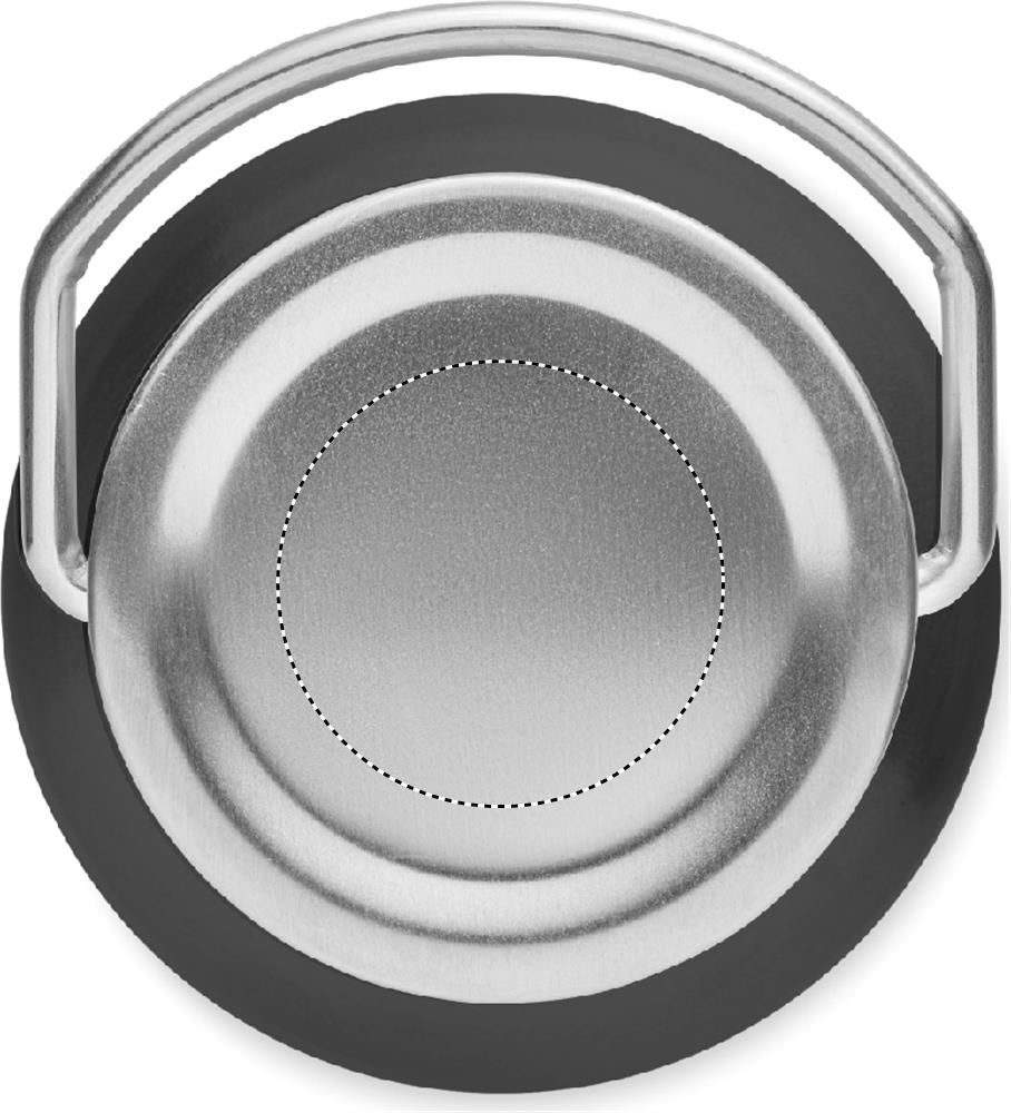 Taaskasutatud alumiiniumpudel roostevabast terasest käepideme kaanega. Lekkevaba. Mahutavus: 500 ml.