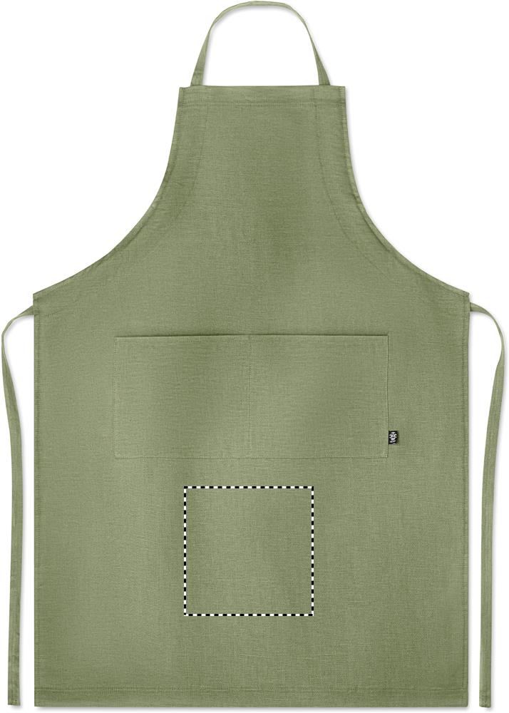 200gr/m² säädettävä 100% hamppukankaasta valmistettu esiliina, kahdella etutaskulla.