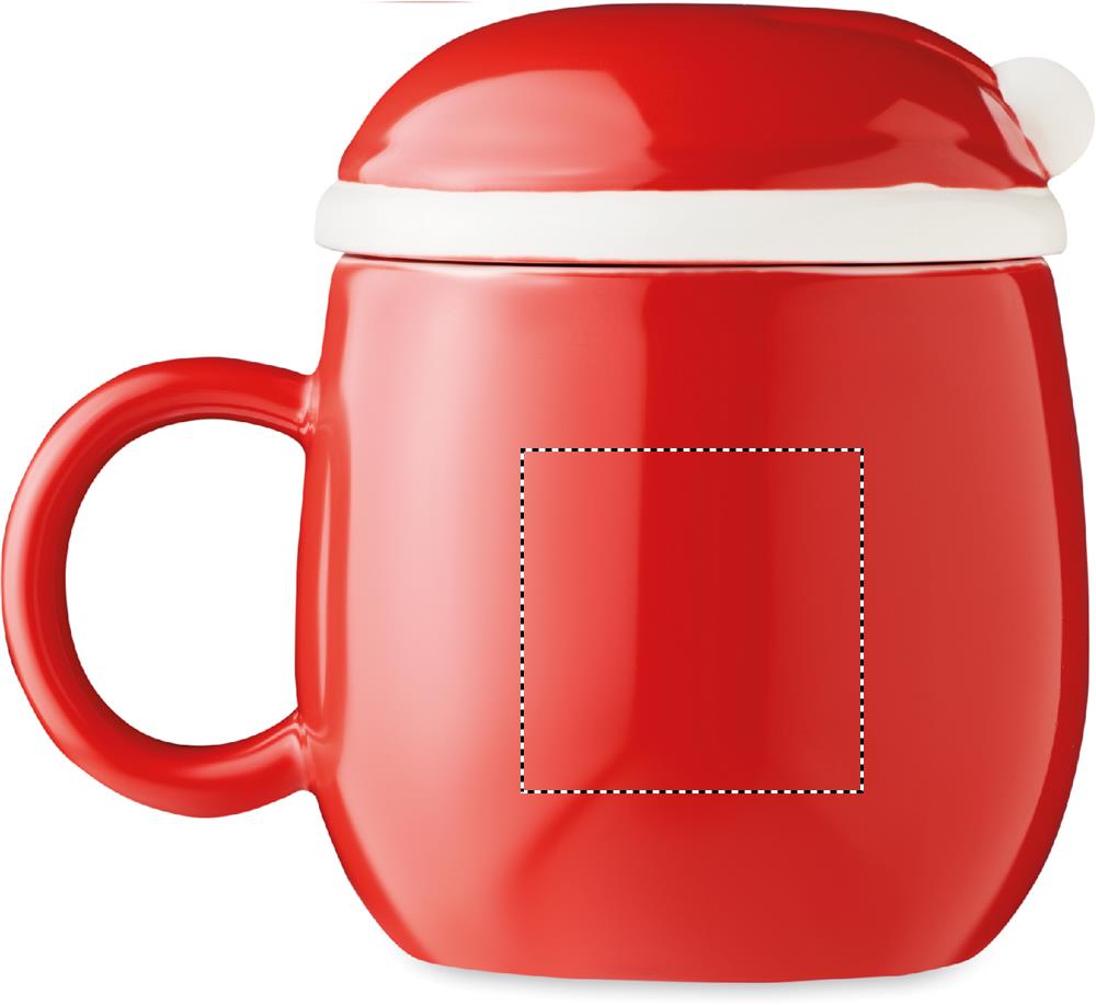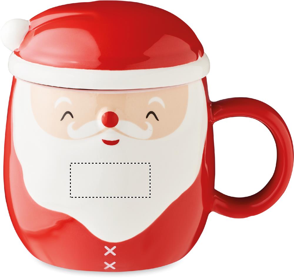 Keraaminen 370 ml muki, joulupukki kuvioinnilla ja kannella.