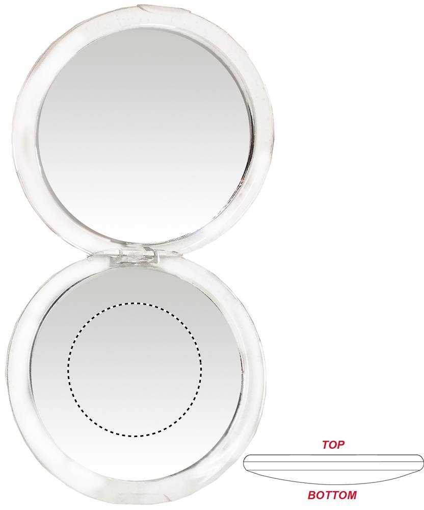 Kompakti kaksipuoleinen taskupeili, tuotteen väri läpikuultava.