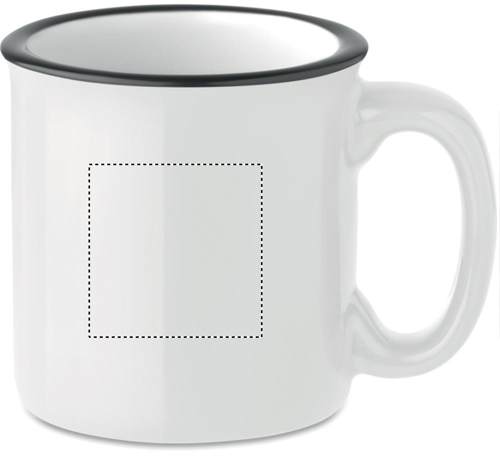 Keraaminen vintage-muki 240 ml. Keraaminen siirtokuva on konepesun kestävä, muut painatukset kestävät vain käsinpesun. Yksittäin pakattuna valkoiseen kartonkipakkaukseen.