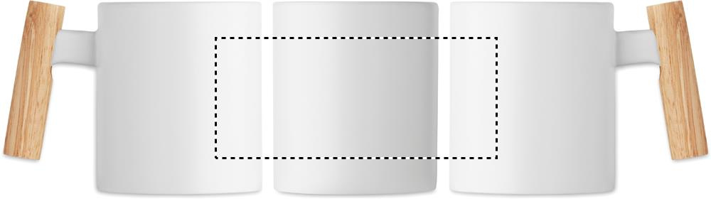 Keraaminen muki puisella kahvalla. Tilavuus: 320 ml. Yksittäin pakattu valkoiseen pahvilaatikkoon.