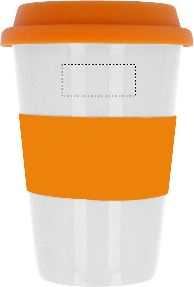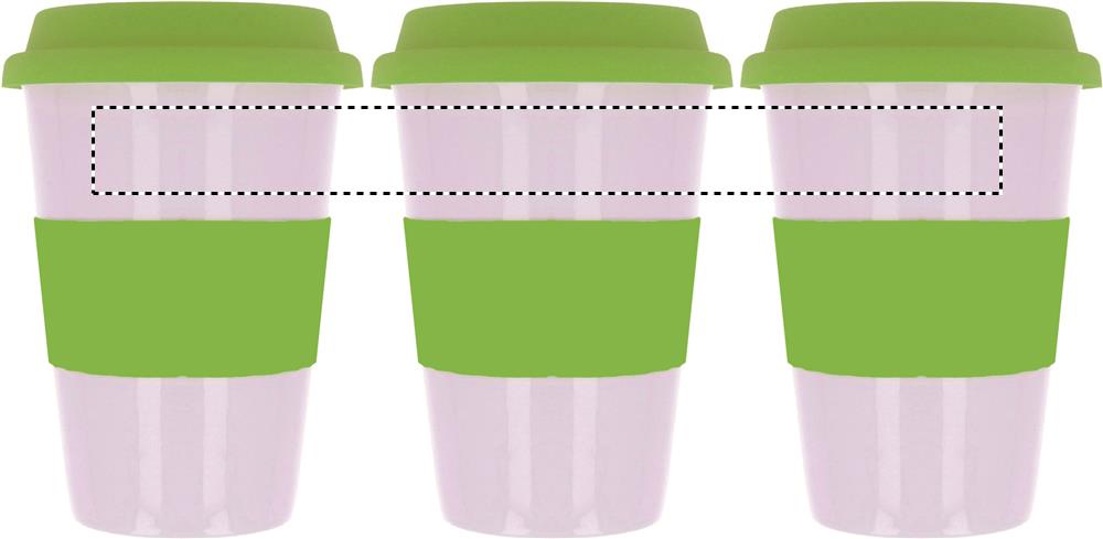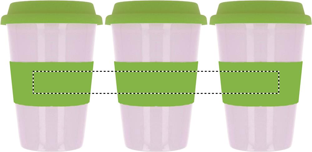 Yksiseinäinen 400 ml keraaminen muki silikonikannella ja silikonisella vyöteellä, tuote ei ole mikroaaltouunin kestävä. Keraaminen painatus on konepesun kestävä. Tuote saattaa kuumentua ulkopuolelta käytössä.