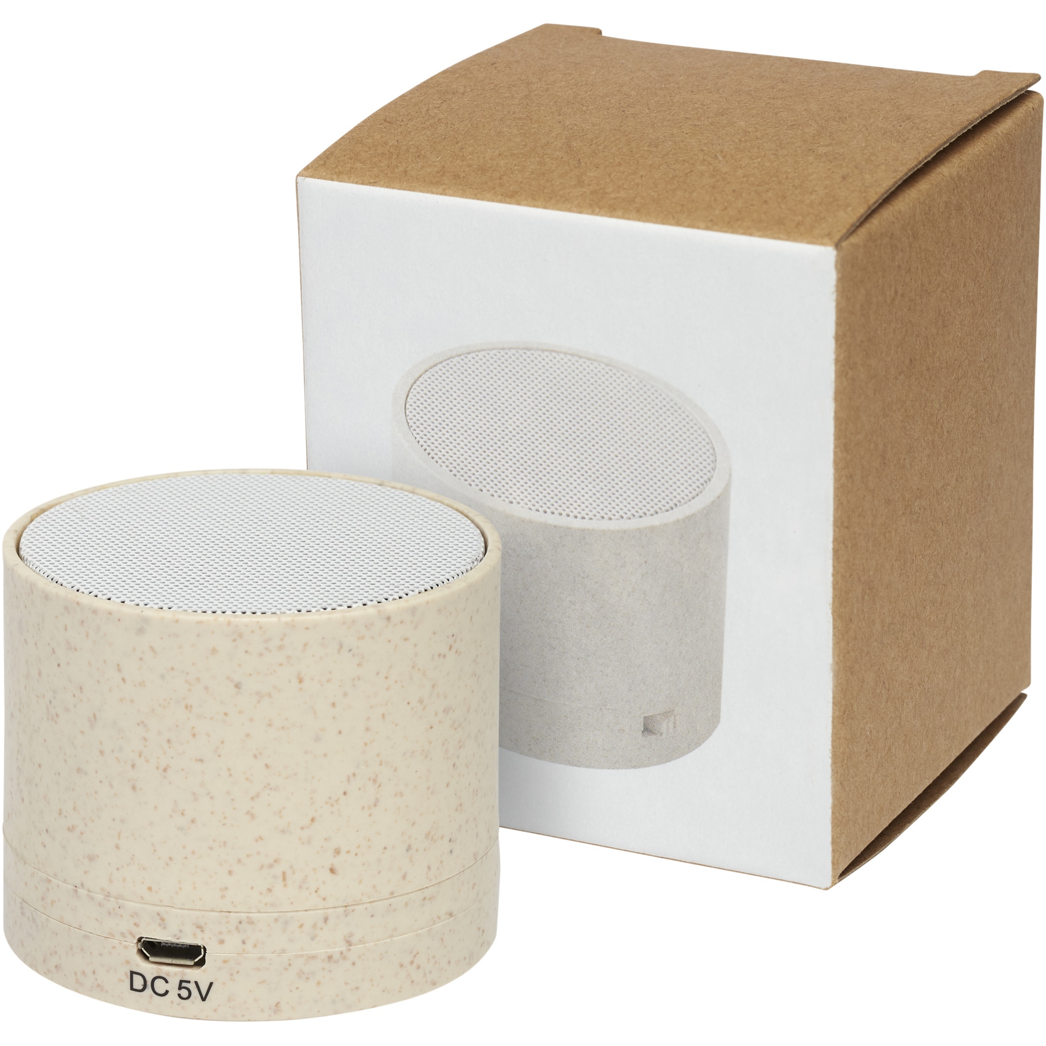 Bluetooth®-kaiuttimen kotelo on valmistettu keskenään sekoitetusta vehnänoljesta ja muovimateriaalista, mikä vähentää tarvittavan muovin määrää. Kaiutin tuottaa kristallinkirkasta ääntä yli 1,5 tunnin toistoajalla maksimiäänenvoimakkuudella 3 W:n lähtöteholla. Bluetooth® 5.0. Pakattu lahjapakkaukseen ja mukana ohjekirja (molemmat valmistettu ympäristöystävällisestä materiaalista). Mukana Mikro-USB-kaapeli.