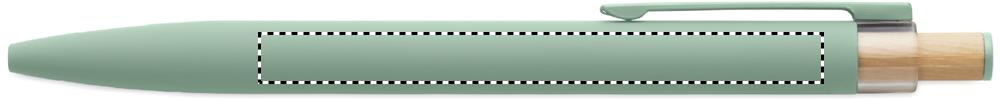 Kierrätysalumiinista valmistettu kuulakärkikynä, jossa on bambupainike, jossa on yhteensopivat värilliset yksityiskohdat ja yhteensopiva metalliklipsi. Sininen muste.