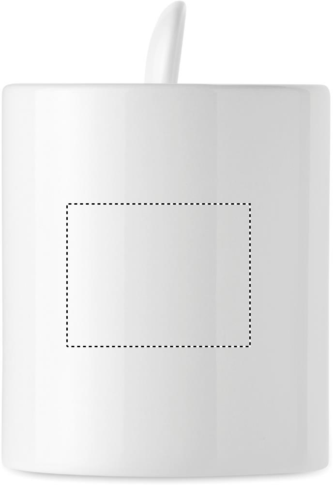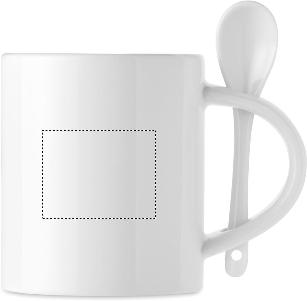 Keraaminen 300 ml muki lusikalla ja erikoispinnoite sublimaatio painatukseen.