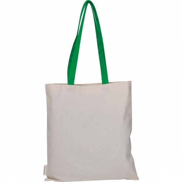 Puuvillakassi, jossa on kaksi pitkää kahvaa. Valmistettu 75 % kierrätetystä puuvillasta ja 25 % kierrätetystä PET-muovista. Kankaan paino: 140 g/m². Logosi on painettu kassin toiselle puolelle.