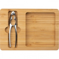 Kaunis bambukulho metallisella pähkinänsärkijällä. Tee logoviestillesi erityisen maukas asetus tällä artikkelilla. Painamme logosi bambukulhoon laserkaiverruksella.