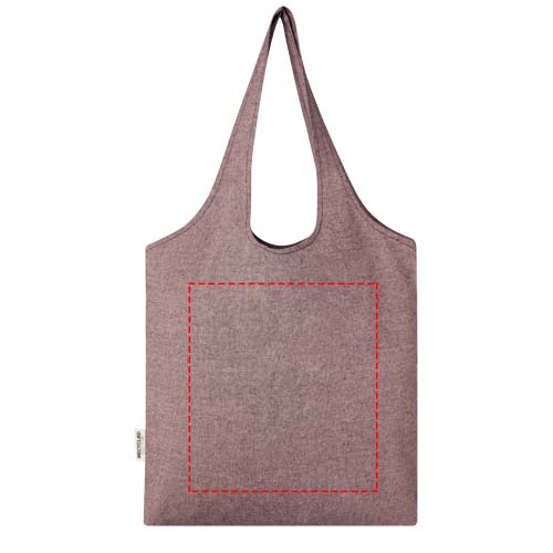 Trendikäs 150 g/m² ostoskassi, jossa on avoin päälokero ja 25 cm pitkät kahvat. Valmistettu kierrätetystä puuvillasta ja täysin uudelleenkäytettävissä, joten se on erinomainen vaihtoehto muovikasseille. Varsinaisen tuotteen väri saattaa vaihdella hieman tuotantoprosessin luonteen takia. Kantokyky 5 kg.