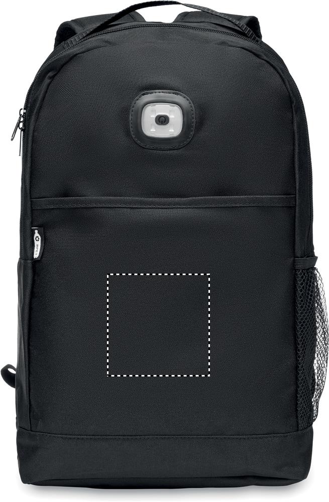 600D RPET reppu cob valolla, valossa 3 erilaista valonsäätöä. Nappiparisto sisältyy toimitukseen.