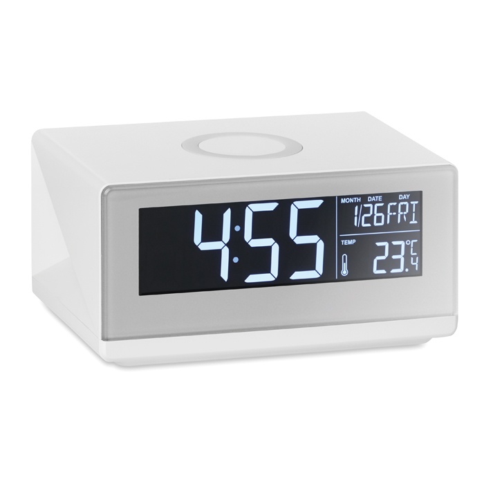 Kosketusnäyttöinen sääasema langattomalla lataustoiminnolla, herätyskellolla ja yövalolla. Sisältää AC-DC 2 pin- pistokkeen sovittimen, lähtövirta DC5V/1.0A. Ei sovellu UK käyttöön. Yhteensopiva android, iphone8 ja uusimpien laitteiden kanssa.