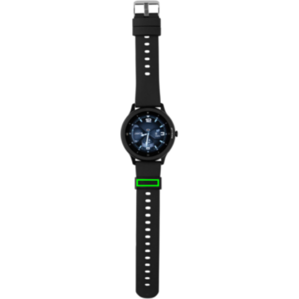Moderni suorituskykyinen kello 1.28:n tuuman pyöreällä, nopeasti reagoivalla kosketusnäytöllä. Kellolla seuraat aktiviteettejäsi koko päivän. Korkean resoluution näyttö. Valmistettu RCS (Recycled Claim Standard) sertifioidusta kierrätetustä TPU:sta (ranneke) ja kehys on sinkkiseoksesta. Kierrätetyn materiaalin kokonaismäärä: 23% perustuen tuotteen painoon. RCS sertifiointi varmistaa kierrätettyjen materiaalien täysin sertifioidun toimitusketjun. Toimintoihin sisältyy: askelmittari, kalorit, etäisyys, multi-sport -toiminto (24 erilaista), herätyskello, sykemittari, verenpainemittari, unimittari, kalenterin päivitykset, ilmoitukset: tekstiviestit, Facebook, Skype, WhatsApp ym. Sopii yhteen Android 4.4 ja iOS 8.0 ja uusimpien mallien kanssa. IPX 68 veden- ja pölynkestävä. BT5.0. Standby-aika 25 päivää ja toiminta-aika jopa 7 päivää. Sisältää klippilaturin, jolla ladata kellon. Pakattu FSC®-sekoituksesta valmistettuun kraft-pakkaukseen. Tuote ja lisätarvikkeet 100% PVC-vapaita.