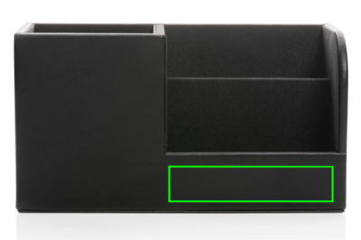 Ylellinen toimistotarviketeline työtarvikkeillesi. Valmistettu RCS (Recycled Claim Standard) sertifioiduista materiaaleista. RCS on standardi, jolla varmennetaan tuotteen kierrätetty materiaali koko toimitusketjun ajan. Sileä ja ylellinen teline päivittää minkä tahansa pöydän upeaksi työympäristöksi. Ulkokuori valmistettu kierrätetystä RCS-sertifioidusta PU:sta. Sisämateriaali: MDF puuta. Kierrätetyn materiaalin kokonaismäärä: 6.5% perustuen tuotteen painoon. PVC-vapaa.