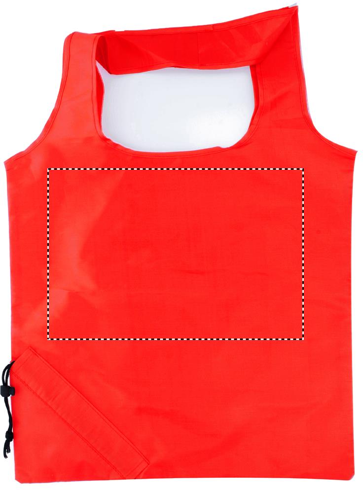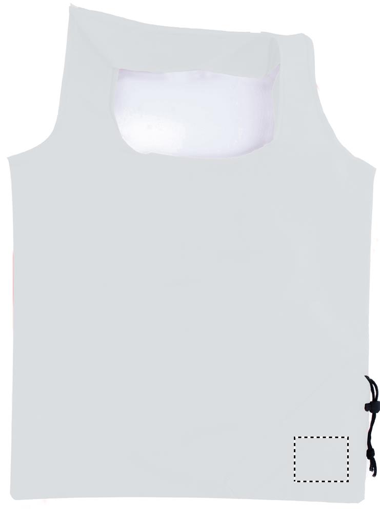 210D- polyesterinen taitettava ostoskassi, pakattavissa kulmassa olevaan kiristysnyörilliseen pussiin.