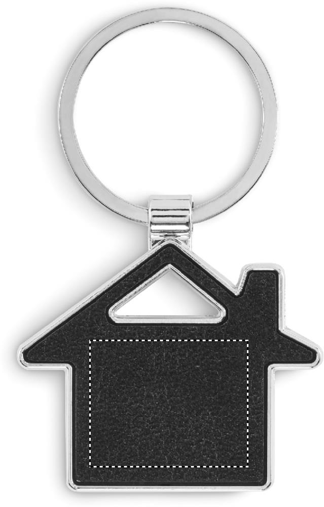 Talon muotoinen metallinen avaimenperä kierrätetyllä PU-nahalla.