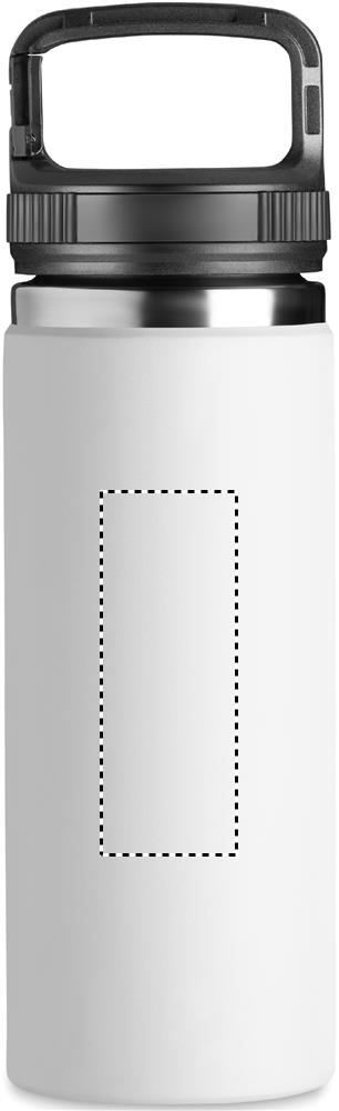 Kaksiseinäinen ruostumattomasta teräksestä valmistettu termospullo, jossa on ripustuslenkki korkissa. Tilavuus 500 ml.