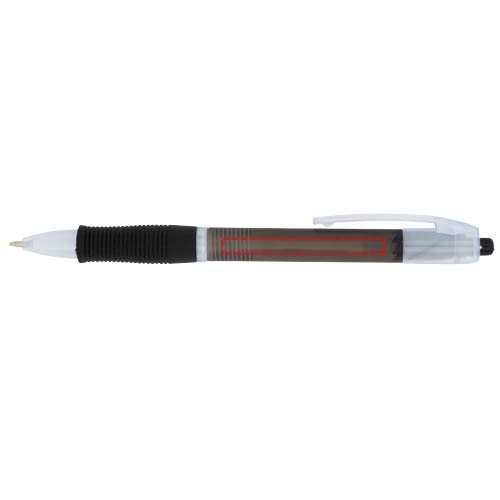 Spalvingas spragtelėjimo tušinukas su skaidriu vamzdeliu ir atitinkamos spalvos gumuota rankena.