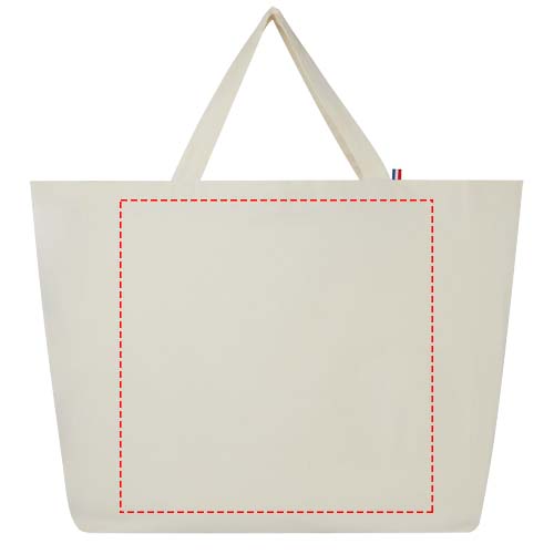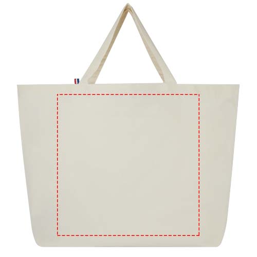 Šis didelės talpos krepšys pagamintas iš geriausių, 100 % perdirbtų medžiagų. Jis sukurtas naudoti kasdieniame gyvenime ir tinkamas nešiotis sunkias knygas ar bakalėjos prekes. 200 g/m² perdirbtos medvilnės/poliesterio mišinys užtikrina ilgaamžiškumą ir patikimumą, suteikiant krepšiui atsparumą iki 14 kg svorio. Verpalai kilę iš Azijos, tačiau audimas, verpimas ir gamyba atliekami Prancūzijoje.